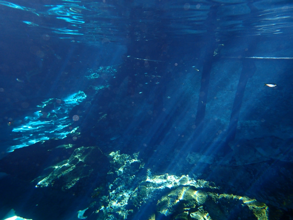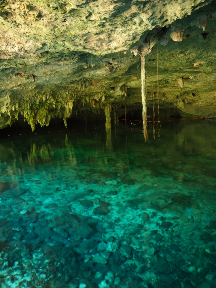 Фотографии под водой снимала я на свой Олимпус. А над водой в таких местах хорошо получалось снимать у Тиночки: фотик у нее более светочувствительный, в пещерных сенотах без него вообще было бы грустно.