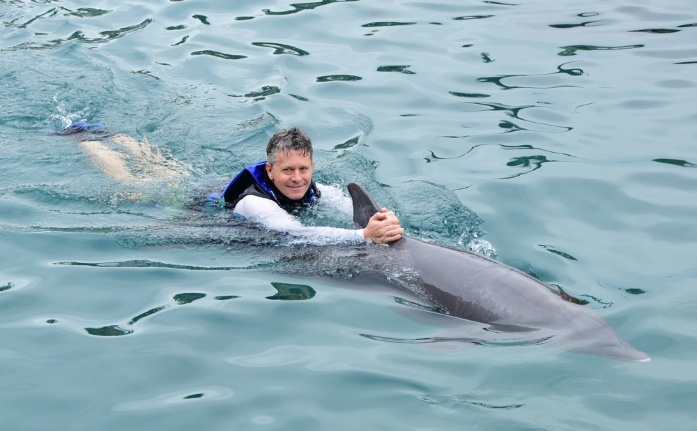 В парке существует некоторое количество дополнительных программ, за которые надо отдельно платить. Мы очень хотели к дельфинам. Как-то так вышло, что раньше нам не удавалось с ними поплавать (хотя в Новой Зеландии мы пытались), их потрогать и обнять. И вот, наконец, настал день, когда можно было исправить такое упущение.