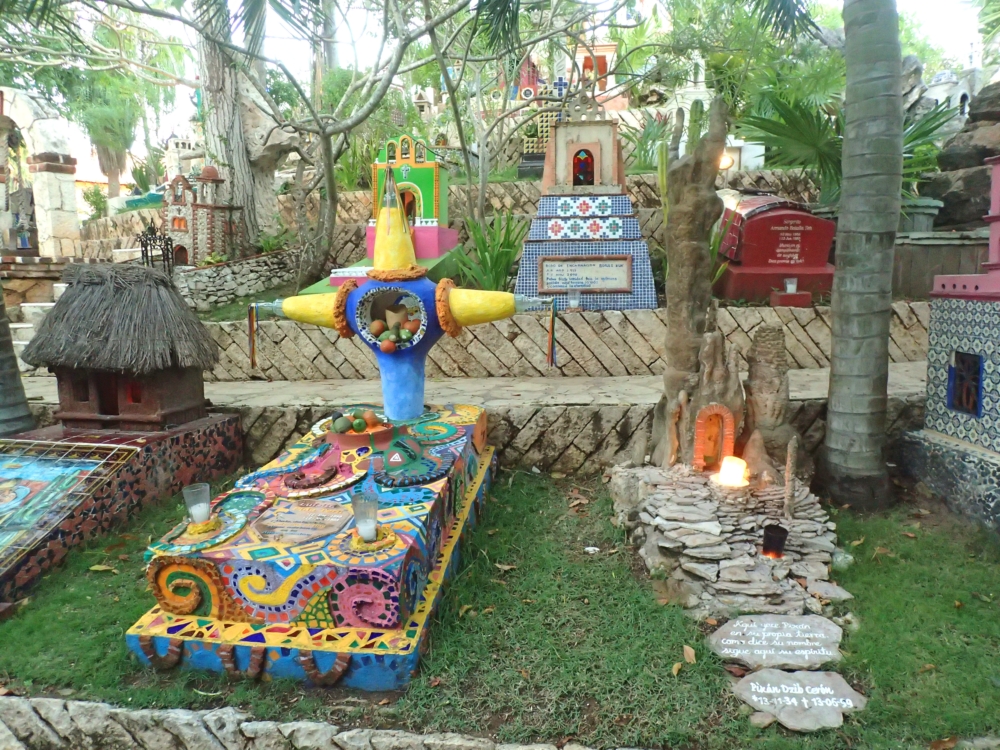 Прошли через кладбище. Ну, такое веселое мексиканское кладбище со смешными надписями на пёстрых могилках.