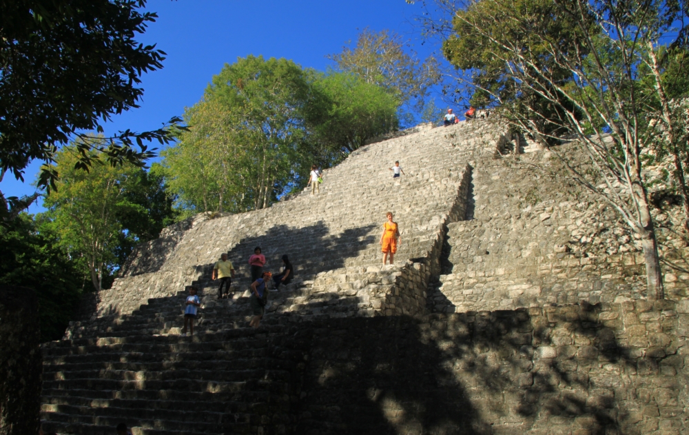 Выбравшись из одного маянского города, мы решили, что в этот же день успеем съездить во второй. В Калакмуль от трассы ведет узкая извилистая лесная дорога длиной в 60 км, и мы сомневались в ее качестве. Однако она оказалась полностью асфальтовой, так что мы все-таки добрались туда и не пожалели. Этот город оказался лучшим из увиденных.