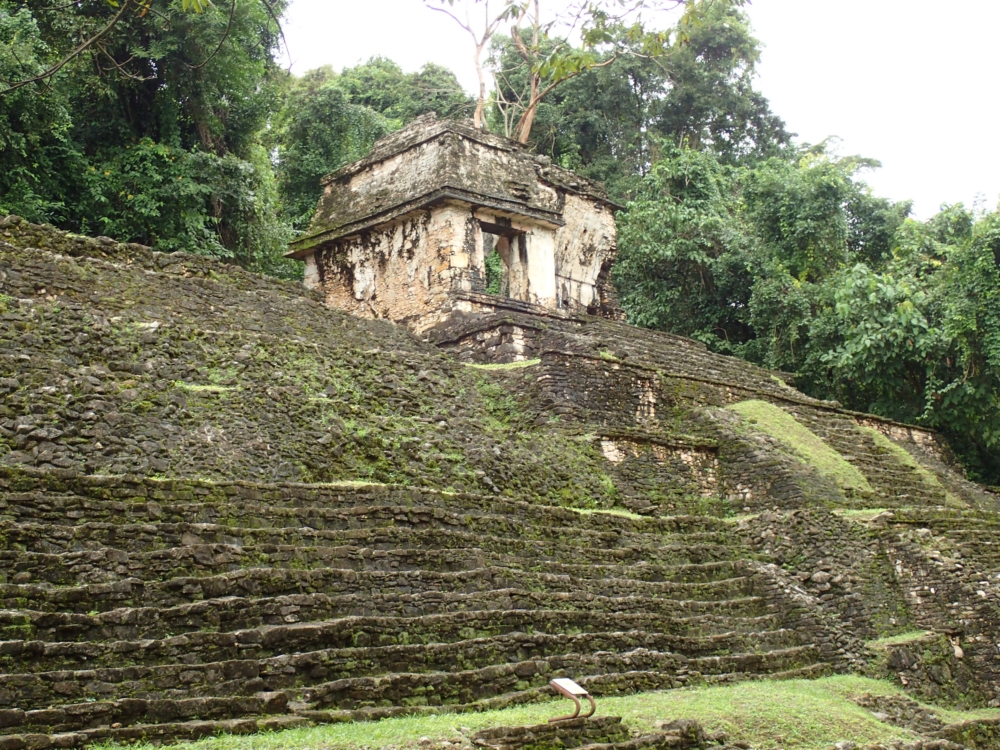 На следующий день хляби небесные заткнулись, но сперва было пасмурно. Мы неспешно позавтракали, приготовив еду прямо на плитке в комнате, и поехали из Паленке современного в древний город Паленке, то есть в маянский археологический комплекс. Для входа надо купить два билета на человека, что-то типа 93 песо и 85 песо.