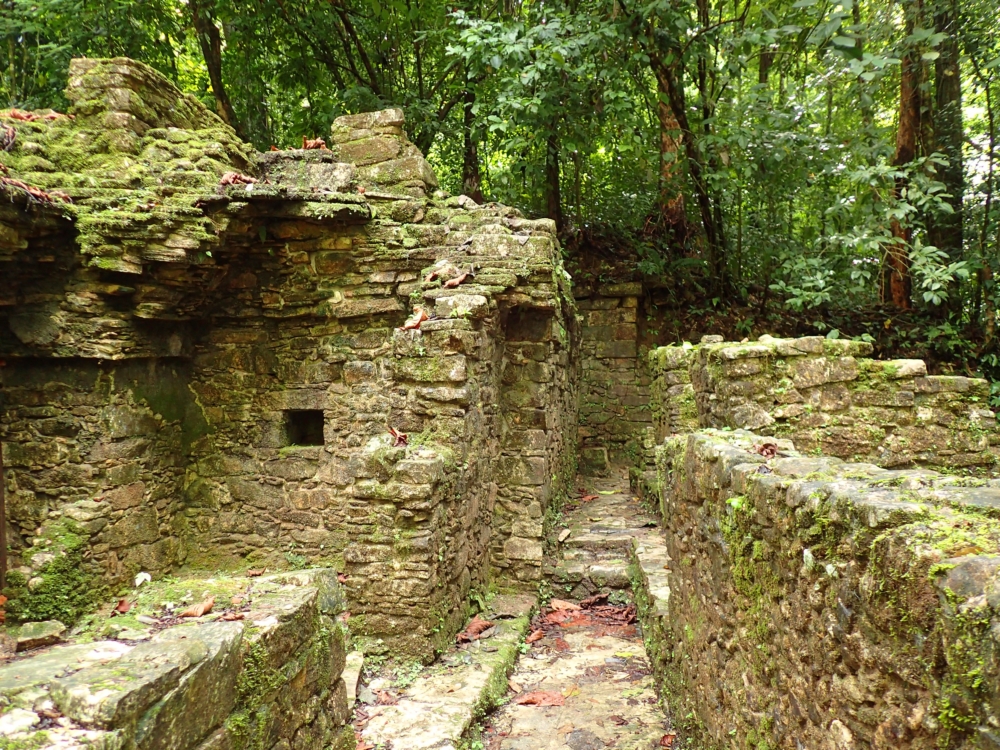 Вокруг города такие же пышные и зеленые джунгли, как в Яшчилане. Вообще-то тут недалеко. Города были соперниками и воевали между собой.