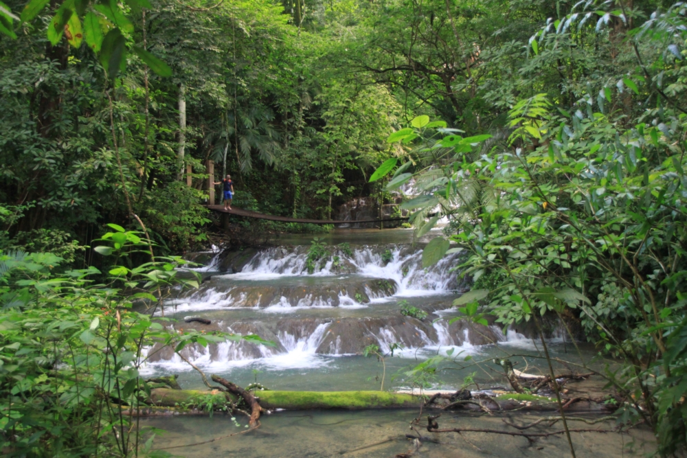 Снова слышали в чаще обезьян-ревунов. Деревья, водопады и остатки строений выглядят тут гармонично.
