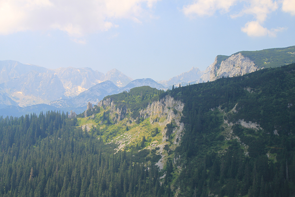 Мы потихоньку ехали на Пивское озеро по нижней дороге, мимо пика Чуревац.