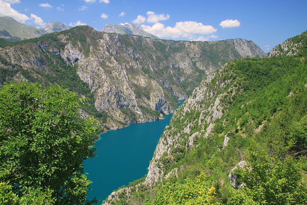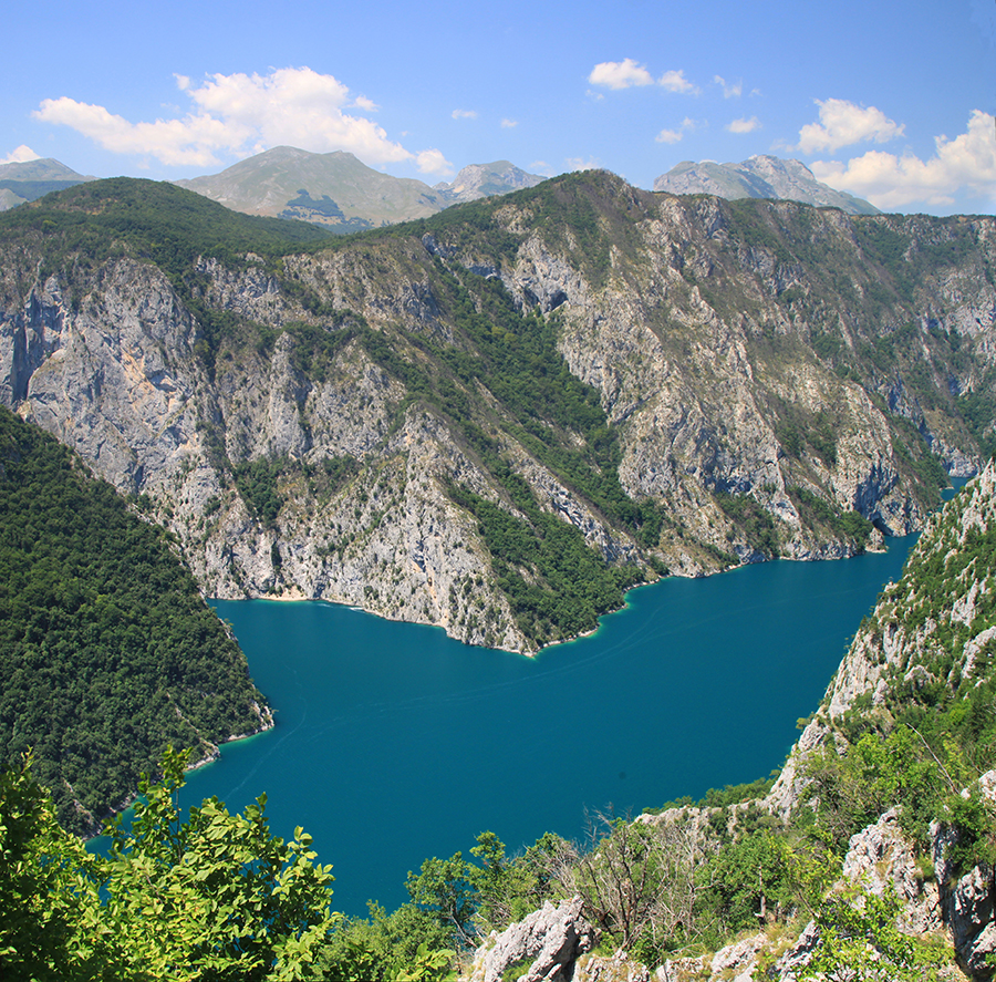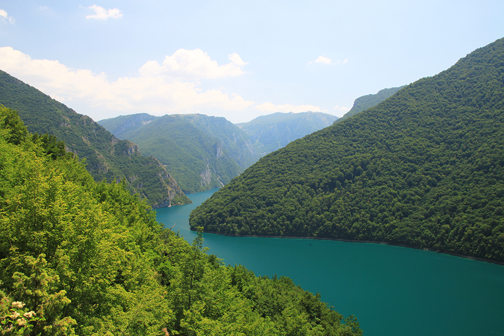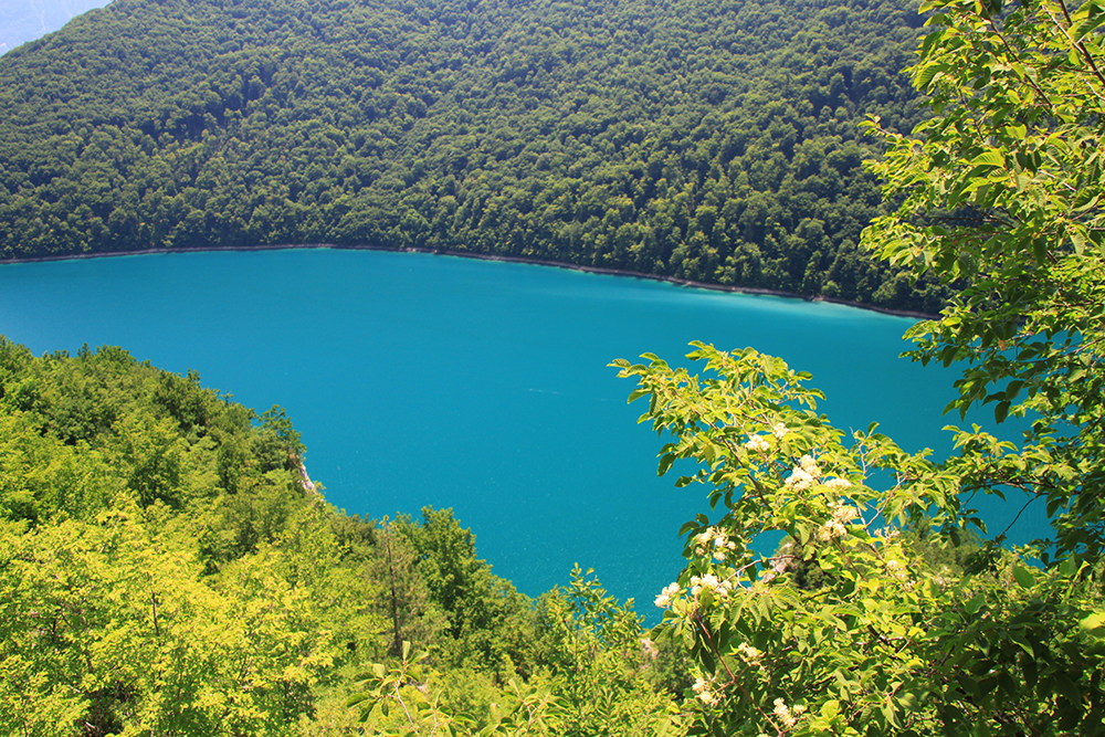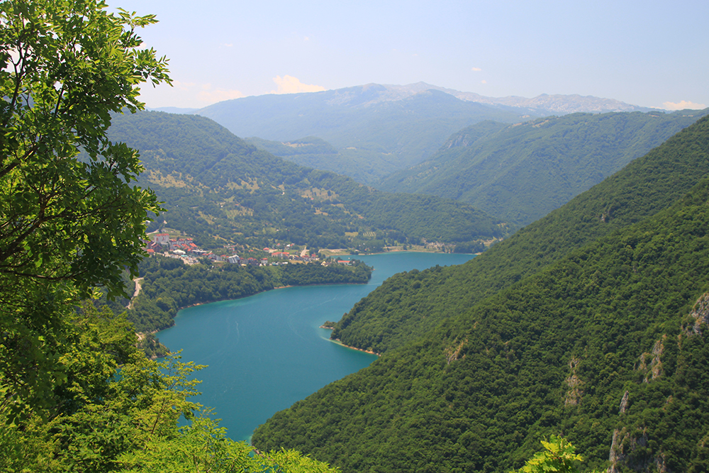 И вот мы спустились по серпантину и стало видно Пивское озеро.