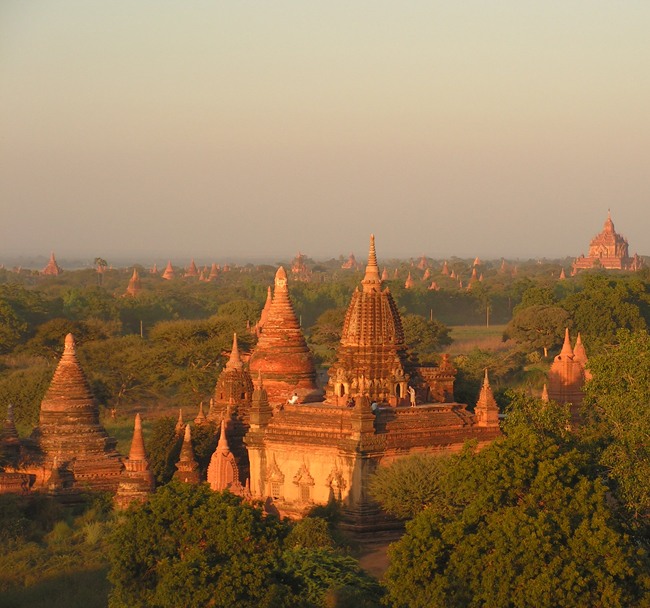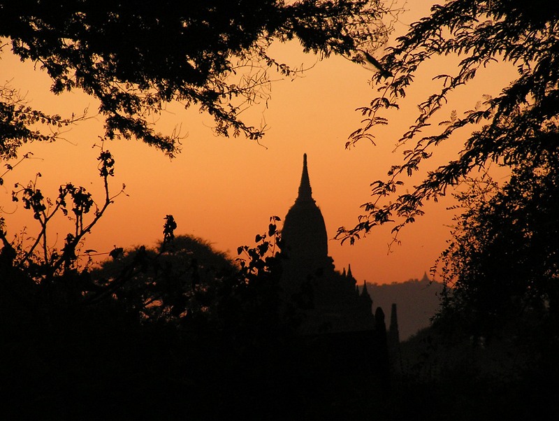 В первый день у нас не было сил искать тихие пагоды далеко в тундре поле, и мы поехали к Shwesandaw Paya. Там, конечно, всегда аншлаг на закате, и мы это знали. Поэтому приехали заранее и заняли лучшие места. В результате толпа народа пришла позже, а ушла раньше нас.