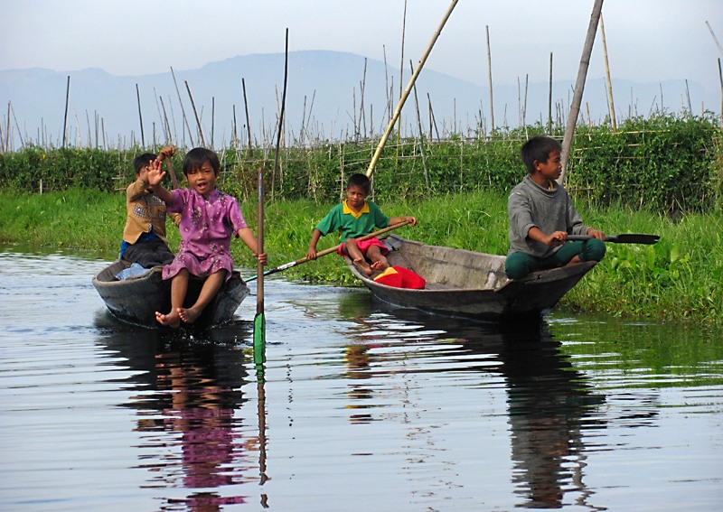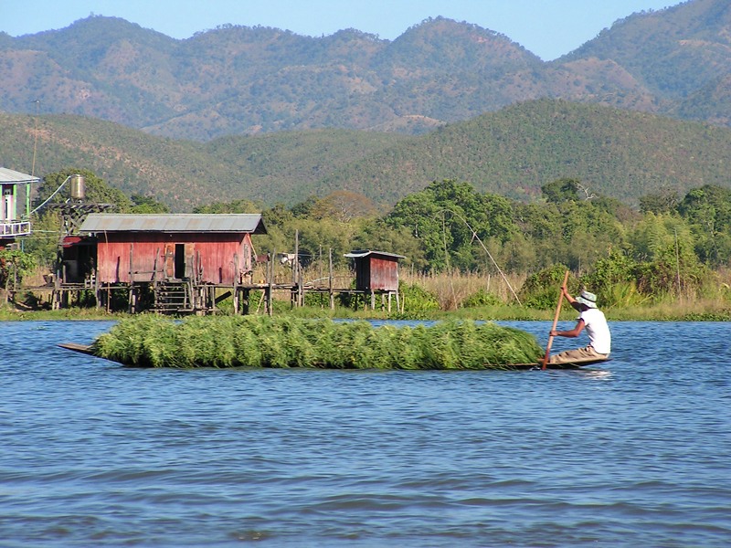 В Мьянме на озере Инле живет народность интха. У них свой забавный способ рыбной ловли и управления лодкой, обширные водные огороды и пагоды с тонкими шпилями.