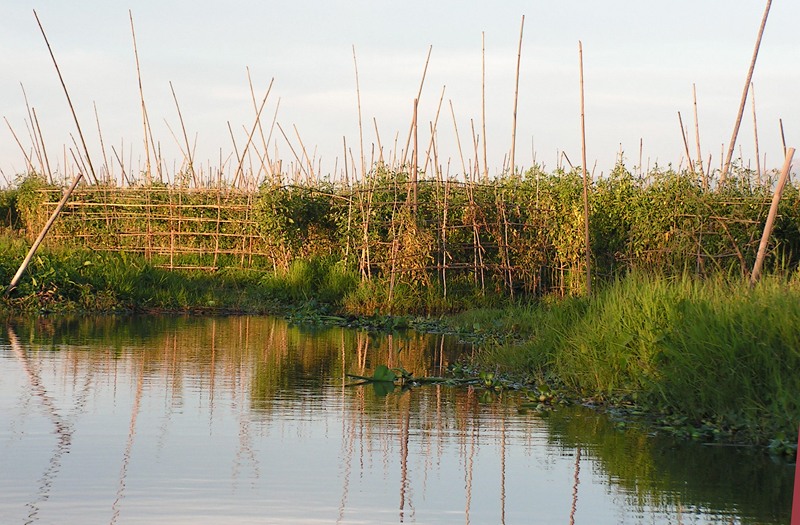 Из соломы и растений делают подушку, на нее насыпают землю, подушку пришпиливают ко дну шестами, чтобы не уплыла. Такой огород не надо поливать, пропалывать надо совсем немного. Урожай помидоров и других овощей местным жителям обеспечен. Более того, все окрестные деревни кушают озерные овощи.