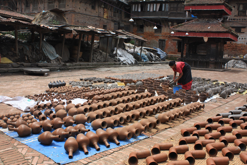 В Бхактапуре развито гончарное ремесло. Есть несколько площадей, на которых разложены горшки.