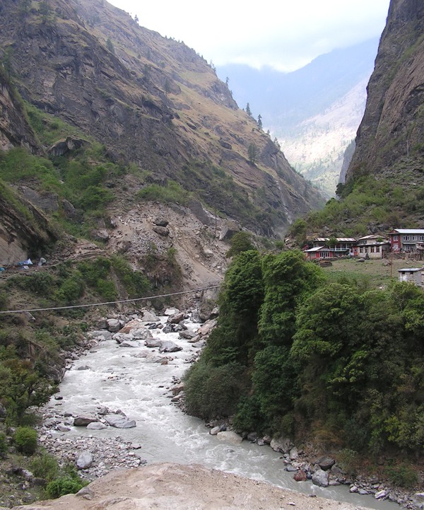 Рядом с ней из маленького ущелья течет Дхуна Кхола и сливается с Марсьянгди. Я не знаю, что передает эта фотография, но я очень долго сидела здесь на берегу: