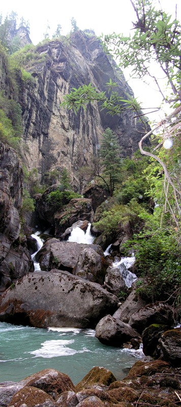 Дорога Джагат - Чамдже очень живописна. И сама по себе долина реки Марсьянгди эффектна, а вокруг еще много водопадов. Но на всю эту красоту кроме меня было некому любоваться. Так называемый "высокий сезон". На пути попадались лишь редкие караваны осликов с поклажей да местные дети - школьники, идущие учиться в соседнюю деревню.
