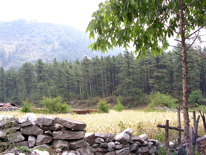 В Гхасе мы пообедали и дальше пошли пешком. На перегоне Гхаса-Рупсе Чхахара случился очередной обвал и автобусы не ходили. Идти было легко и приятно - дорога ровная, в основном под гору. Обвал был совсем небольшим и особо дорогу не заслонял. Дорога красивая, эта долина немного похожа на долину Бхоте Коси: