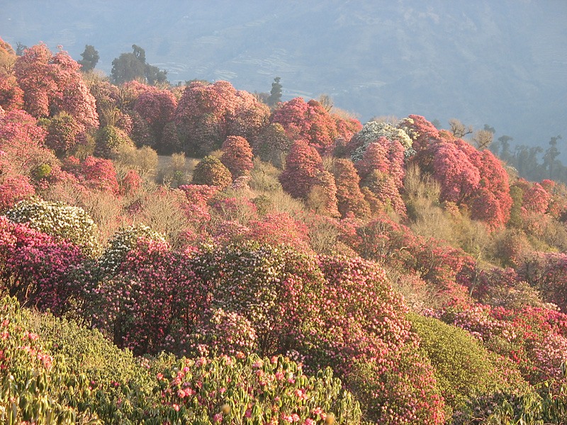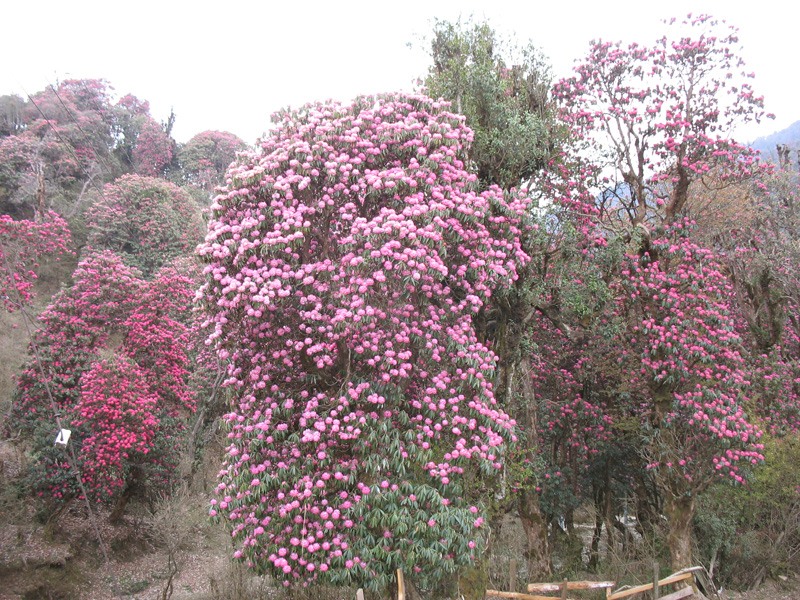 Рододендрон на непали - лалигураса. Я считаю, что это имя подходит таким роскошным цветам гораздо больше греческого. Оно такое же вкусное, как "лалигурасовый сок": если вытрясти из середины цветов росу и выпить, она сладкая и душистая. Поэтому дальше я буду их так называть.