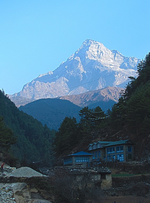 Если пройти от гомпы к краю города, можно попасть на вертолетную площадку. Отсюда улетают те, кому лень идти вниз - точно можно улететь в Луклу, с вероятностью есть доставка до Катманду. Вертолет меньше самолета зависит от погоды, и предложение пользуется спросом.