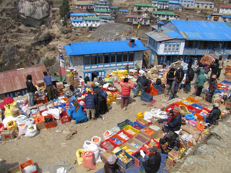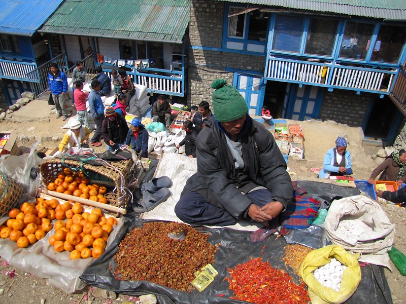 Базар в Намче Базаре - источник разнообразных радостей жизни. После восьми дней треккинга мы накупили яблок и мандаринов, фруктовых компотов в банках, растворимого шоколада, чая и ячьего сыра.