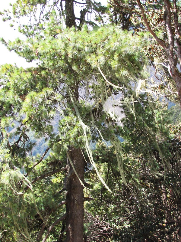 Интересная деталь: на окрестных деревьях, все больше соснах и березах, растут вот такие длинные зеленые "бороды". Это какие-то местные лишайники и они забавно колышутся на ветру.