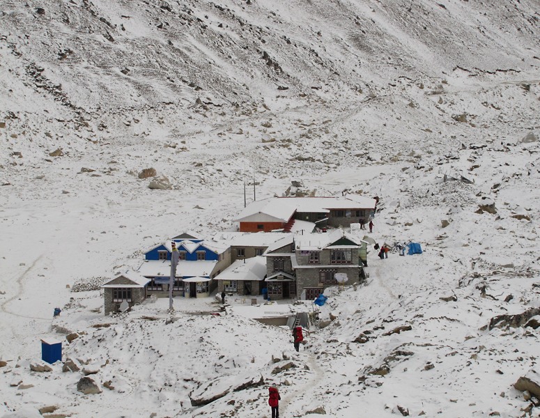 В Лобуче и в Горакшепе народу много. Сколько людей тут скапливается в высокий сезон, страшно представить. Цены, как и в Чукунге, самые высокие на треке.