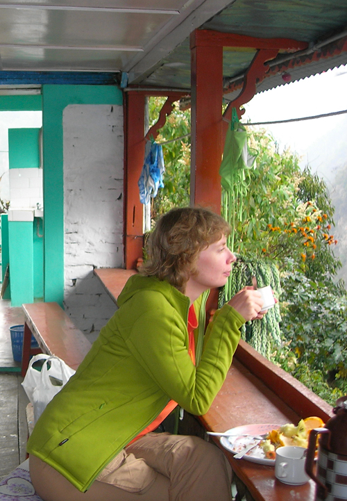 В нашем лодже есть общий балкон, где можно пить чай, есть фрукты и созерцать окрестности.