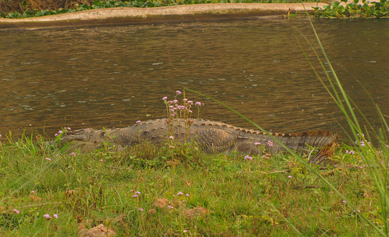 Крокодилица в гнезде. Высиживает