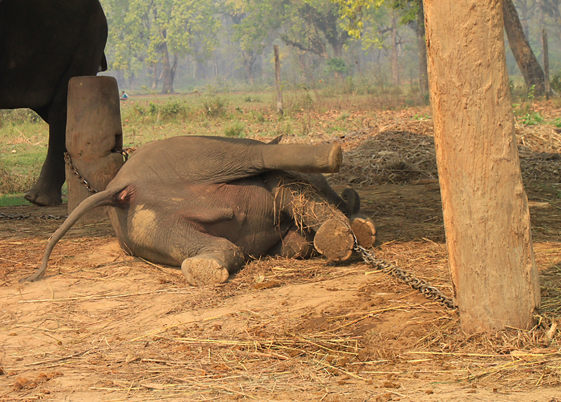 Слон в Читване - зверь необходимый. Чтобы подобраться к носорогам поближе, только он и подойдет. Носороги его не пугаются, и, что самое важное, на него не нападают. Поэтому в поселке Саураха, по эту сторону границы, много слонюшень...слонятников...стойбищ для слонов, вобщем.
