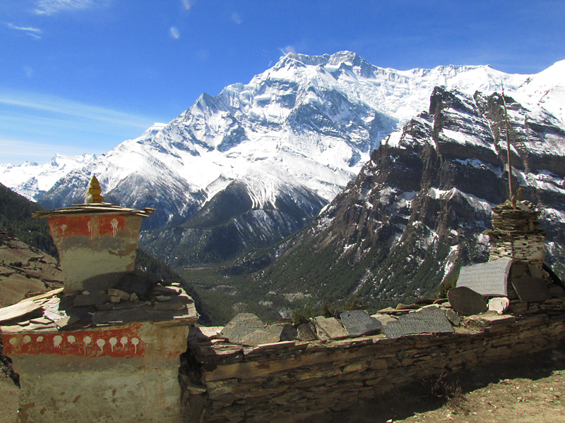 От Писанга до Мананга можно полюбоваться аутентичными тибетскими деревнями, с каменными квадратными домами, средневековыми улочками и вот такими ступами. Никаких гладких линий, никакого фабричного бетона.