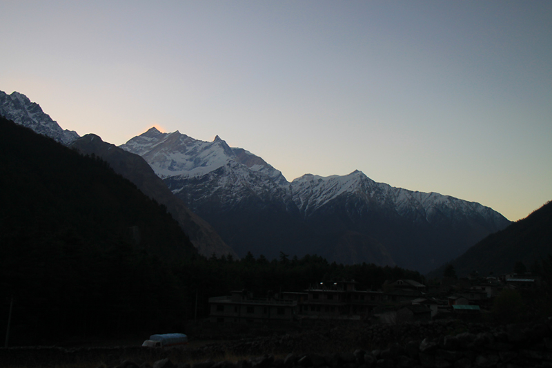 Но с тех пор на этом участке из-за дороги треккеров крайне мало. Поэтому тропа заросла и, когда мы вышли в темноте утром, мы ее просто не нашли. Попрыгав по крутым склонам и посмотрев на часы, решено было рассвет встречать внизу у поселка.