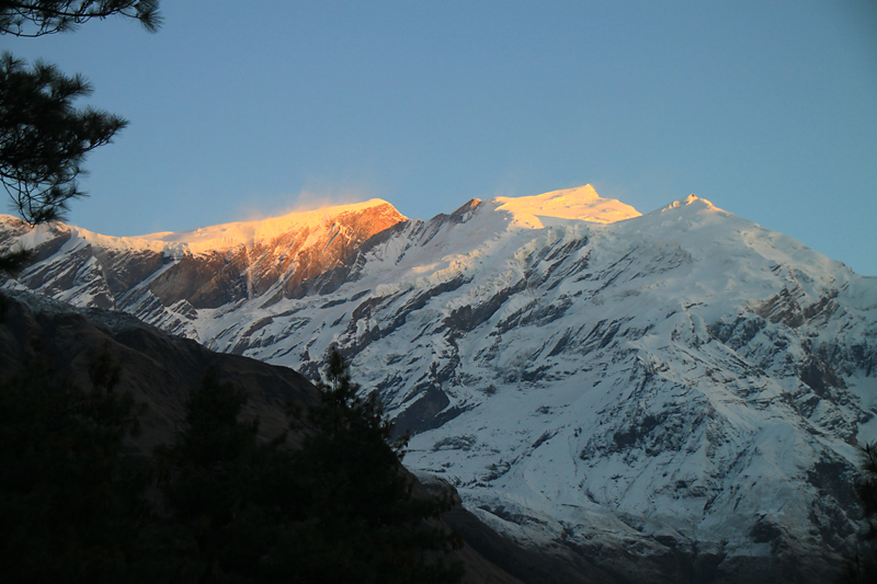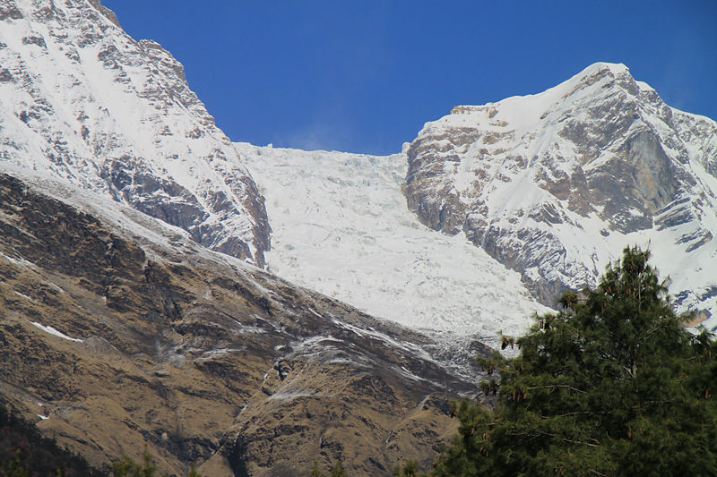 А издалека можно даже лучше разглядеть ледопад Дхаулагири.