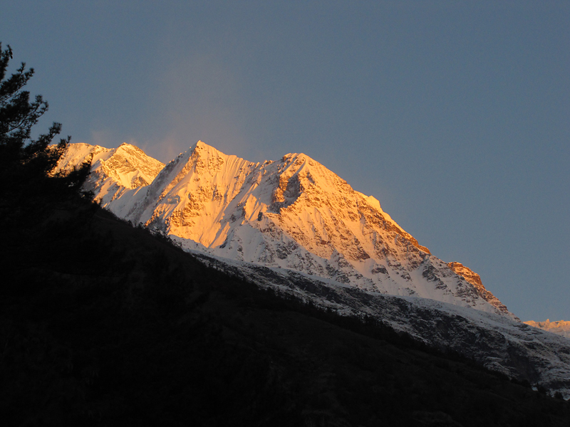А с другой стороны начинается рассвет на Дхаулагири, которая тоже на себя не похожа, особенно для тех, кто привык смотреть на нее с Пунхилла.