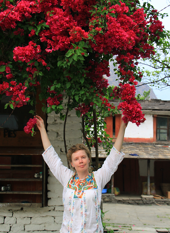 На верхней тропинке, которая идет с одним перерывом почти до Гхасы, как раз распускались деревья и оттенки зелени создавали совершенно завораживающие картины.