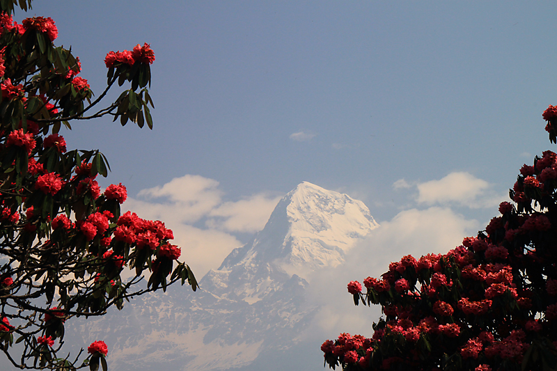 Тучки быстро разошлись и мы успели сфотографировать Южную Аннапурну в цветочках.