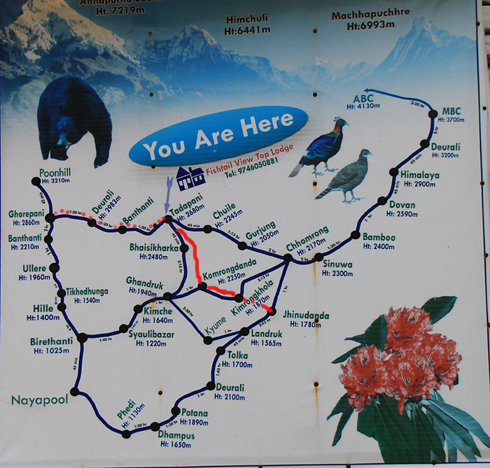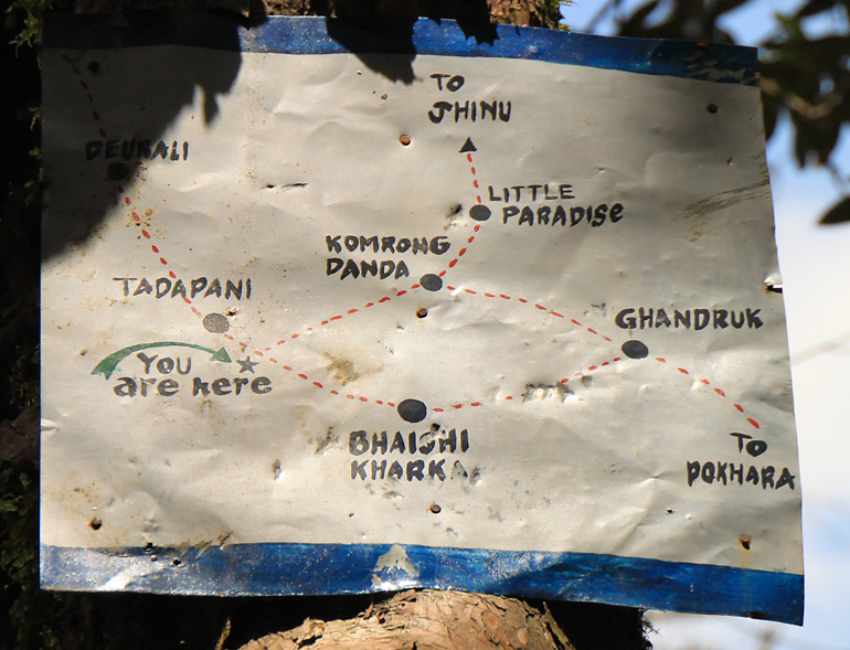 Нам было велено идти по дороге на Гандрук, через один километр будет ответвление налево вниз. И действительно, там даже висела новая, более полезная для нас карта.