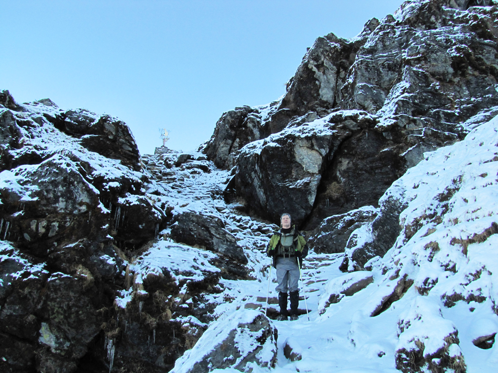 Как мы узнали позже, практически никто не рискнул в тот день пойти по нашим следам, потому что мало у кого были кошки. При том что тропа есть, в крутых местах выложены каменные ступеньки.