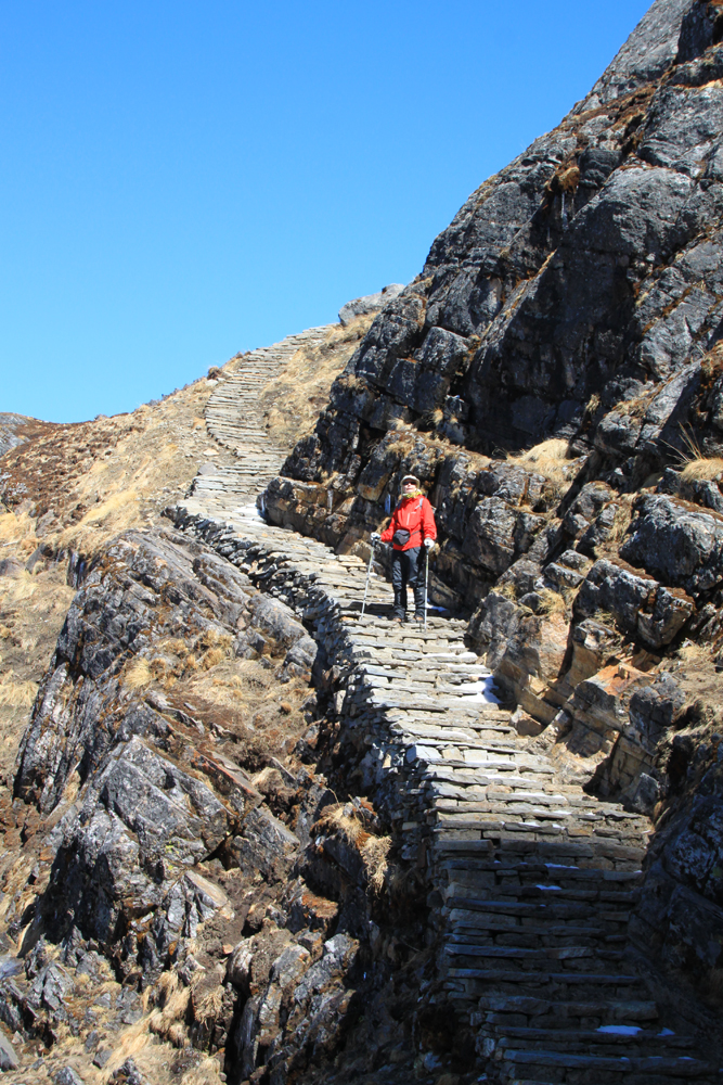 Мы остановились в том же самом верхнем лодже, где был приветливый и одинокий хозяин. Отмылись, отстирались и высушили постиранное. Сидели на каменном «диване» и смотрели вокруг на пасущихся яков, зашивали дырки в снаряге и ели. Отличный день отдыха, я нашла возле лоджа грядку с мятой и тихо ее пощипала. Понаблюдала я денек за хозяином, и могу сказать: работа у него тяжелая. Прежде всего тем, что он себе не принадлежит — нет своего личного времени, нет выходных. С раннего утра до ночи в одиночку надо готовить еду и кормить постояльцев, топить печь, убираться. Иногда ему помогают гиды, идущие вместе с туристами. Как мы позже узнали от бывалых людей, самостоятельным туристам тоже бывает полезно помочь на кухне, если в лодже только один работник.