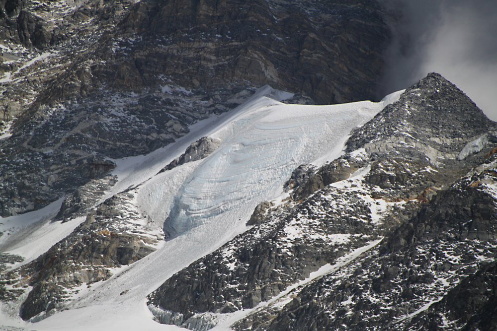 Посмотрели на предполагаемый «верхний путь» в Добато от озера Кхаяр через перевал, носящий трогательное имя «Кукусик». Да ну нафиг, там уже альпинизм, как-то не хочется на этот перевал лезть ни с какой стороны. Хотя практика показывает, что иногда вид перевала бывает обманчиво грозным.