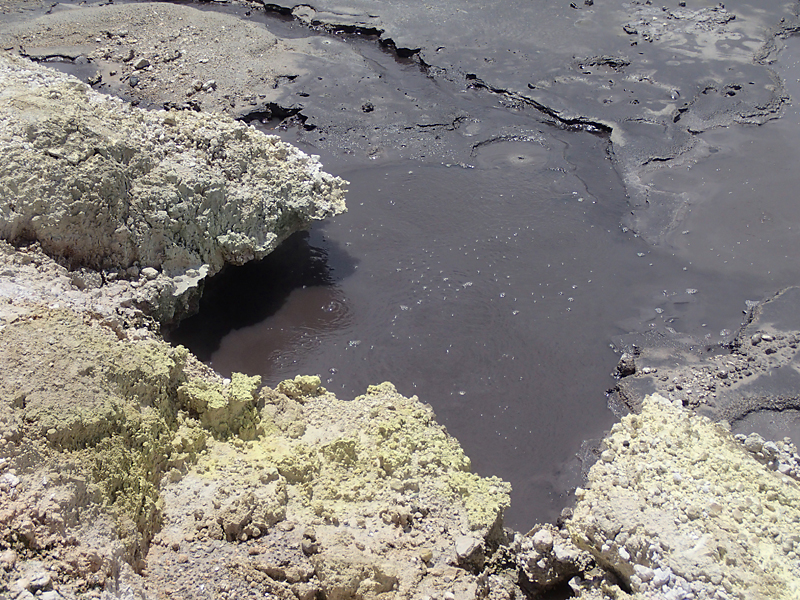 На краю бурлилок образовались серные узоры.