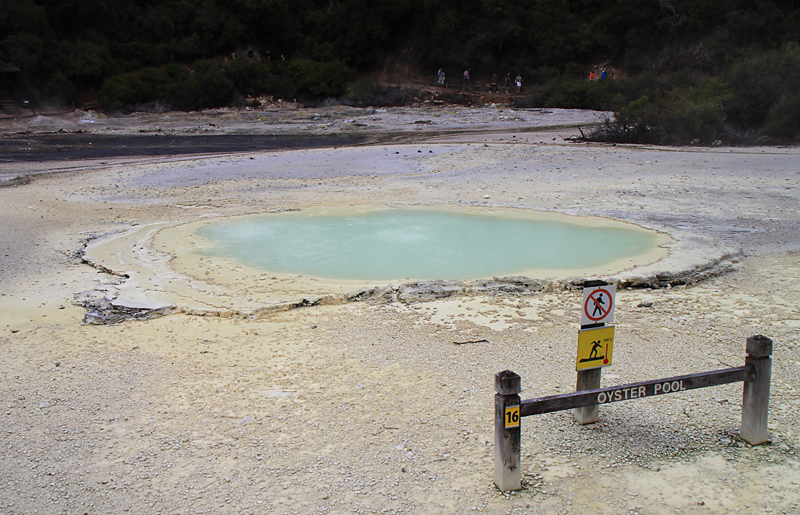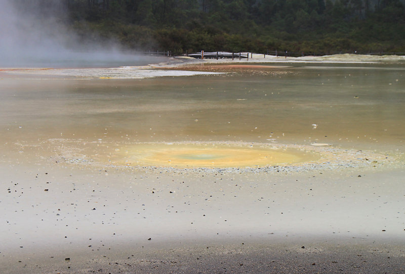 Этот термальный парк считается самым известным и посещаемым в окрестностях Роторуа. Нам впечатление немного испортила погода, было пасмурно и иногда мокро. Однако горячие озера действительно демонстрировали все возможные цвета палитры.