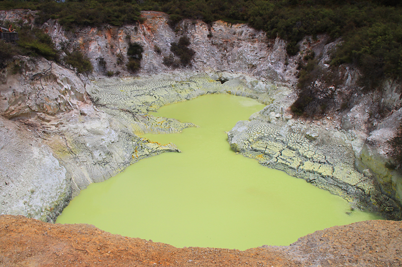 Термальный парк Вайотапу находится в 30 километрах от Роторуа. Их сайт: http://www.waiotapu.co.nz/ Вход для взрослых 32,5NZD, для детей 11NZD. Гейзер Леди Нокс функционирует раз в день в 10.15 и находится не в самом парке, а рядом с ним, не доезжая до основной автостоянки.