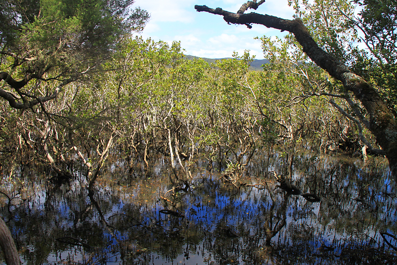Днем остановились возле водопада Харуру. Меня интересовала треккинговая тропа вдп.Харуру-Вайтанги, идущая частично по лесу, частично - по дощатому настилу в мангровых зарослях.