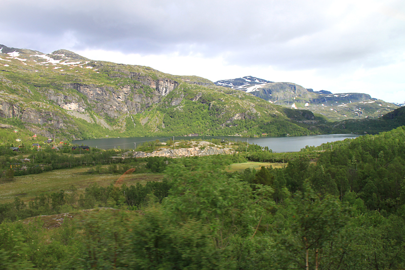 Поездка на норвежском поезде выглядит примерно так. Сперва пейзаж старательно прячется за деревьями. Потом неожиданно открывается картина необычайной красоты, ты восклицаешь "Ух..." и не успеваешь сказать "...ты!", потому что поезд ныряет в длинный туннель. Далее цикл повторяется много раз. О том, чтобы успеть поднять фотоаппарат, речи просто нет, даже разглядеть красоту иногда толком не удается.