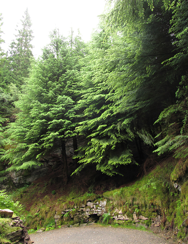 Вниз мы пошли пешком, тропа проложена по лесопарку. Это северный дождевой лес, не иначе - деревья какого-то гигантского размера. В средней полосе таких ёлок не бывает.