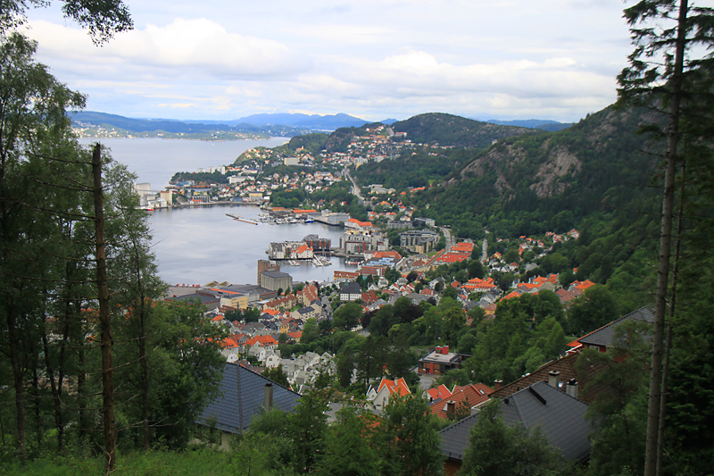 Прогулка началась с фуникулера Флёйбанен, который поднял нас наверх на гору. Оттуда мы смогли полюбоваться городом.