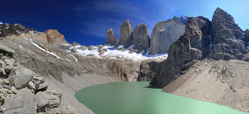 Высота башен от 2600 до 2850, на языке мапуче «пайне» означает «голубой». Так что у них вот были голубые башни. А мне очень нравится, что сверху они отчетливо рыжие. Удивительно, но альпинисты на всех башнях уже были.