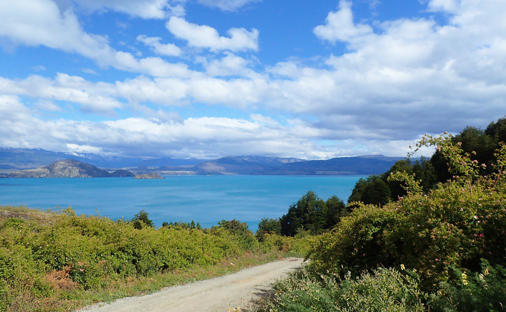 Нам по ней ехать до конца озера и на другой берег, в кемпинг Пуэрто Транкило. Там мы сядем на лодку и отправимся к Мраморным пещерам.
