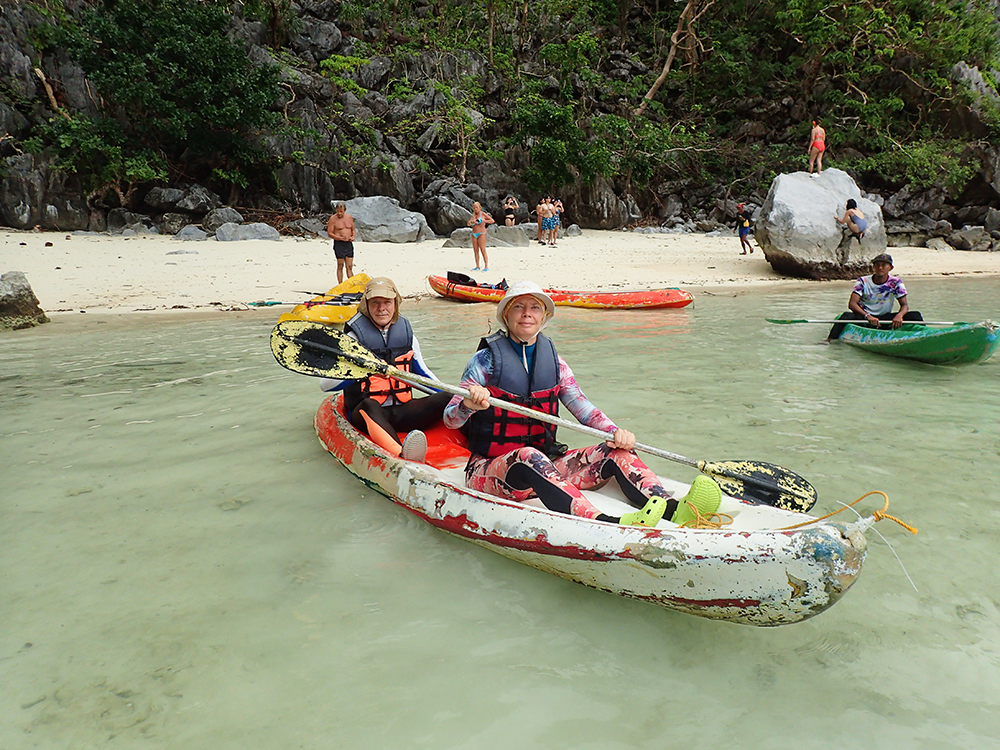 Там перегрузили на каяки (за них надо немного доплачивать, поэтому обязательно брать деньги с собой на экскурсию) и мы уже самостоятельно погребли в лагуну.