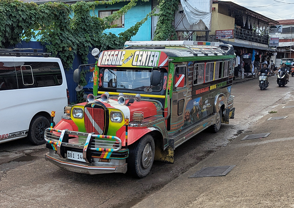 А это джипни, такой общественный филиппинский транспорт.