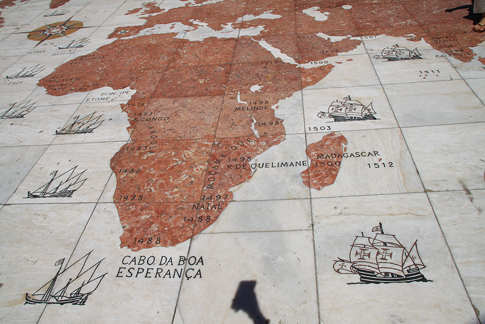 Это каменная мозаика. Здесь обозначены все Великие географические открытия, сделанные португальцами. Все места, где кораблики, отмечено, в каком году что открыли.