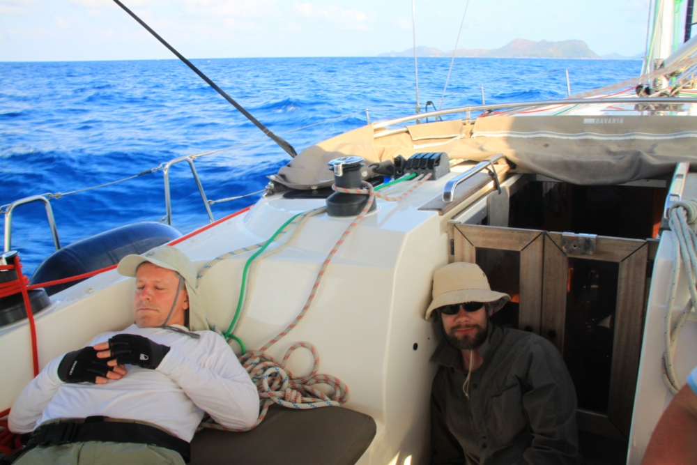 И идем к острову Курьёз. А пока яхта идет, матросы спят. В первый день от качки очень спать хотелось.