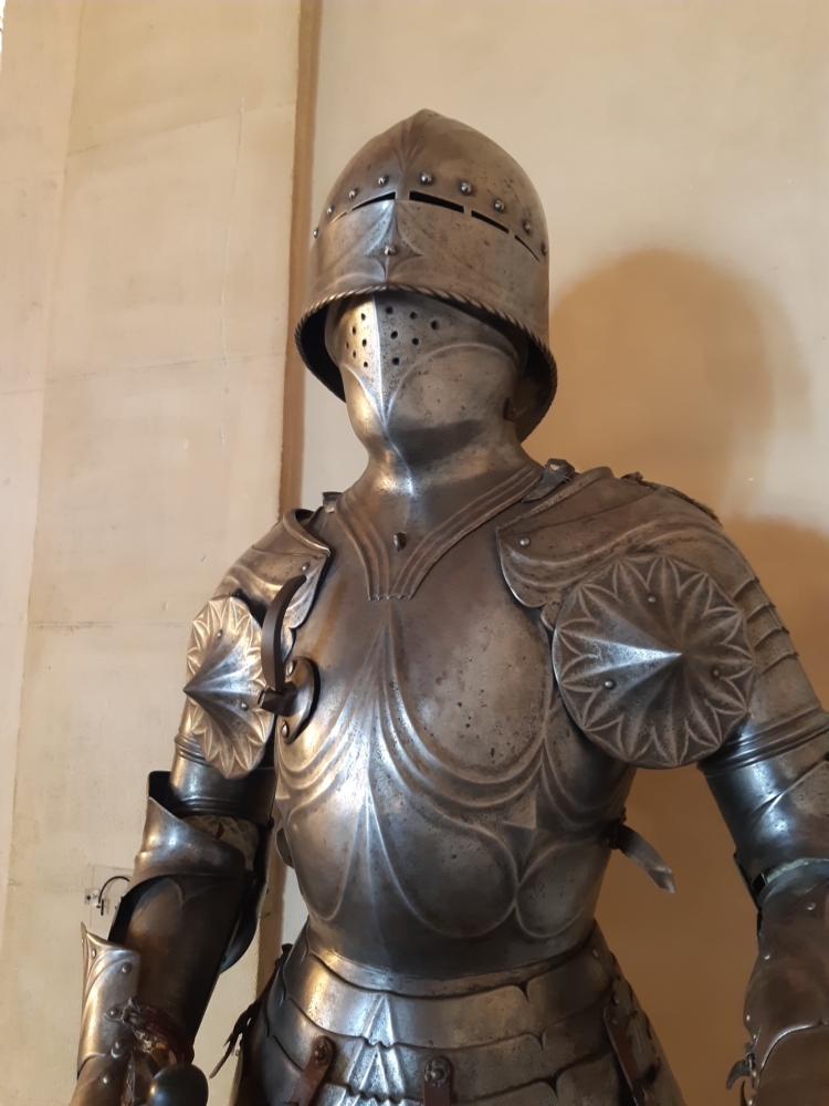 Внутри выставка оружия, доспехов, а также интересные элементы интерьера и всяческий декор. Мы с мортирой.
