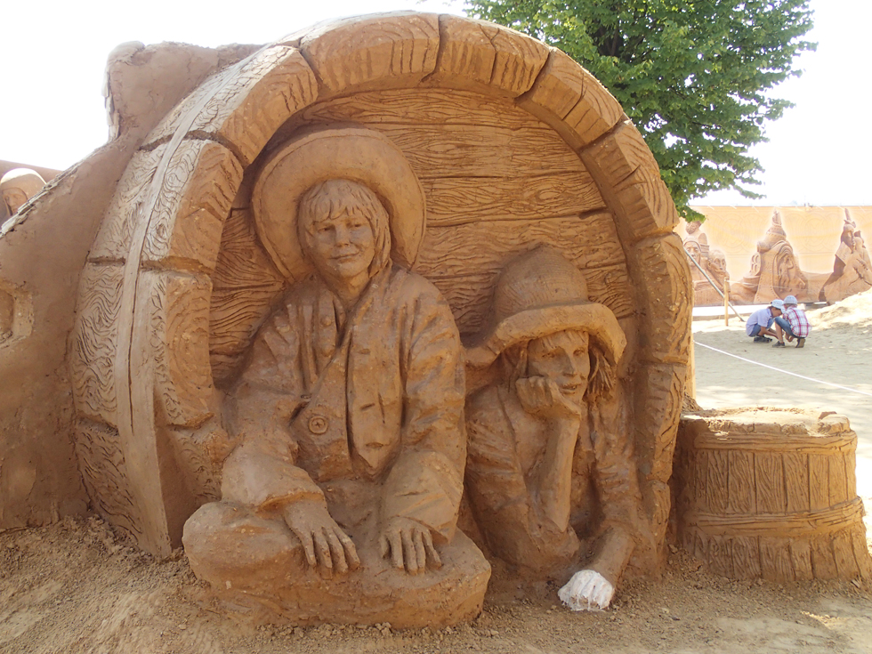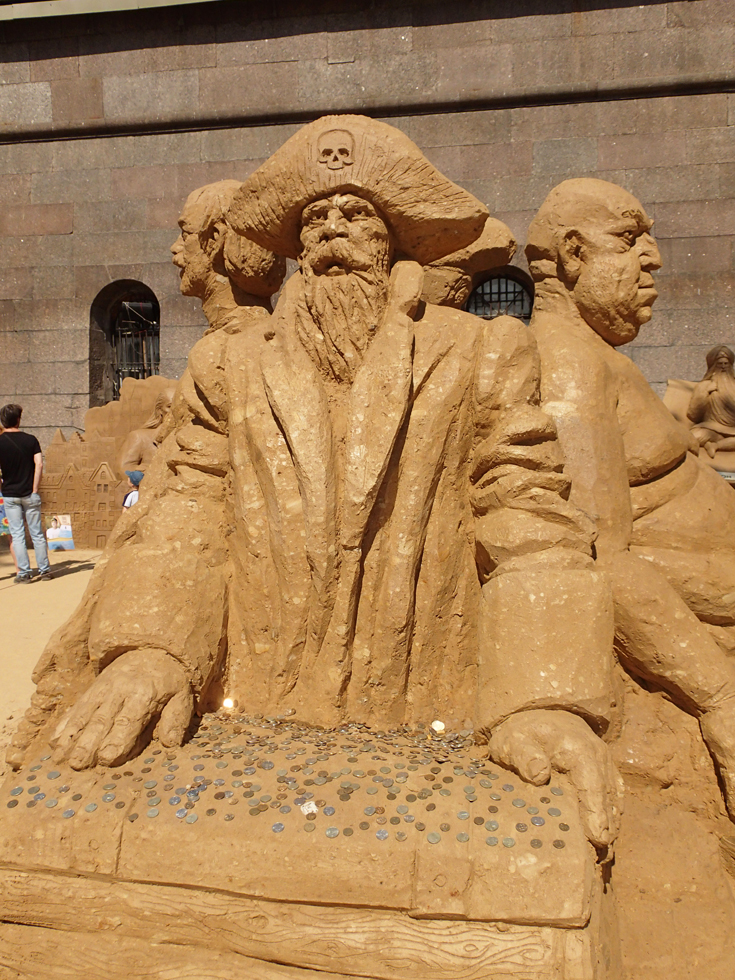 Не удержались и зашли на выставку песчаных скульптур на пляже. В былые годы она была бесплатная, сейчас за вход хотят 300 р, что как-то многовато. Но все равно они забавные.