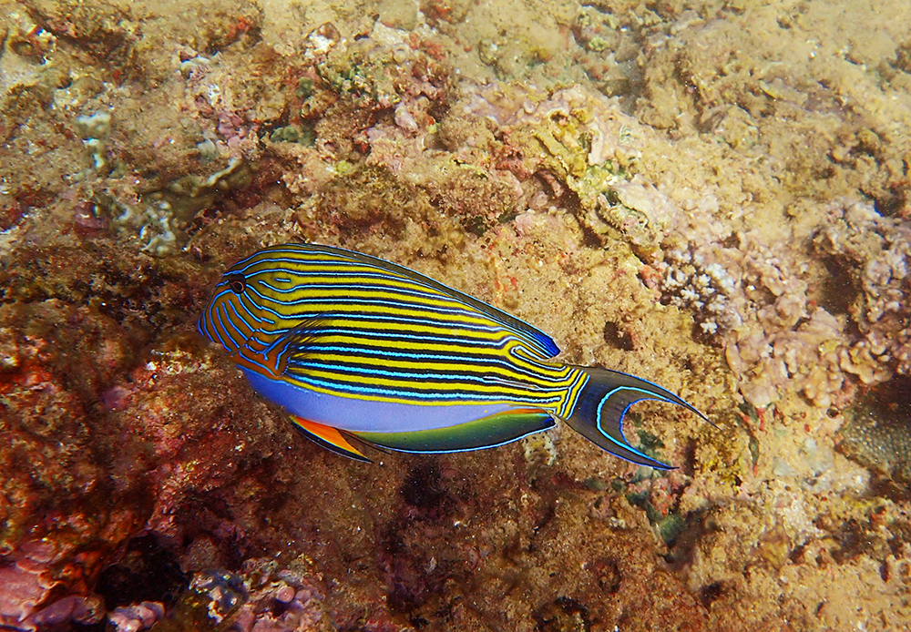 Вот только это не аравийский хирург, которого мы знаем по Красному морю, а какой-то другой. Полоски другого цвета.